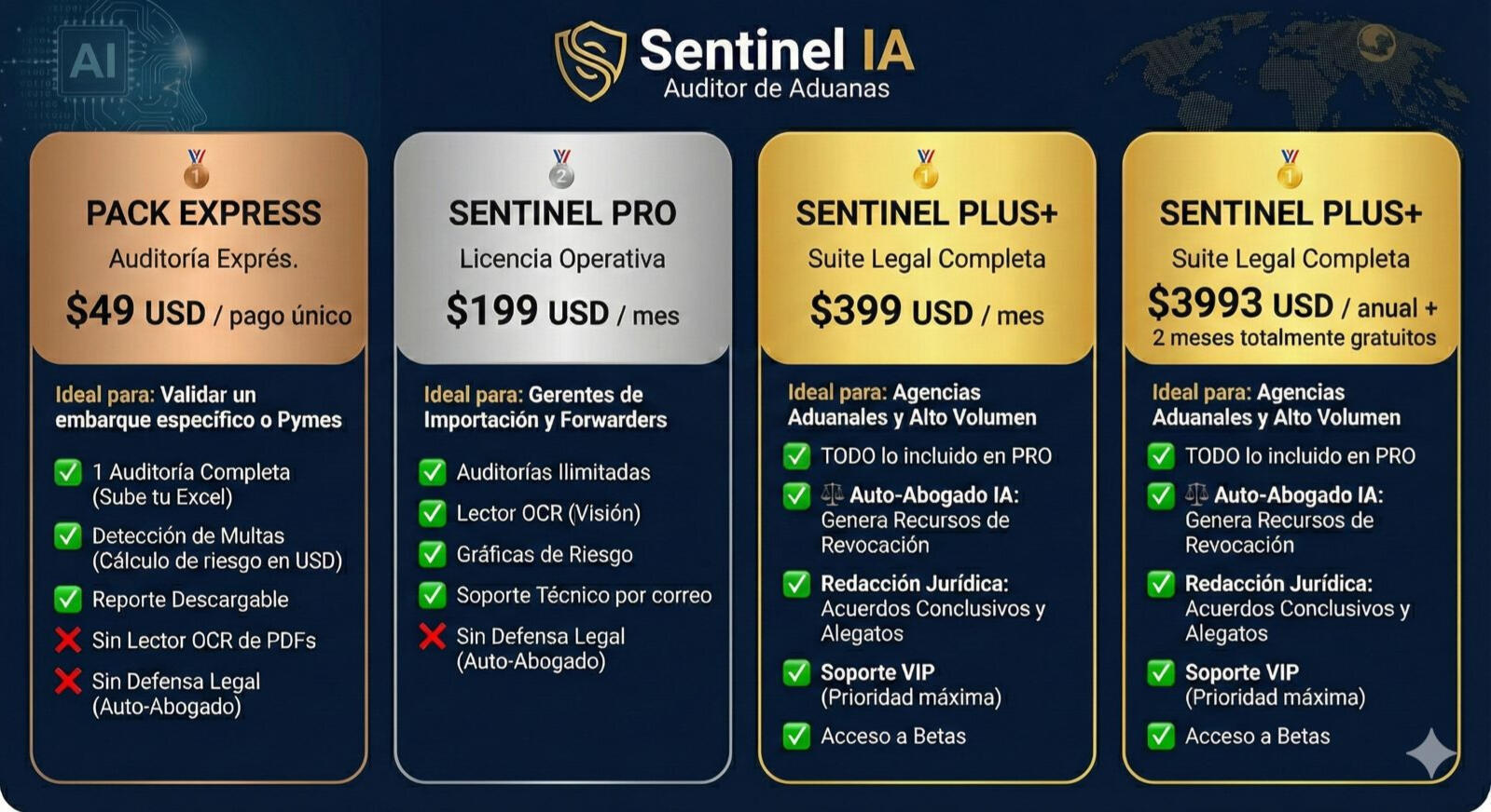 El núcleo de Sentinel es una red neuronal dinámica, nutrida y entrenada con el cuerpo completo de la Ley Aduanera vigente y la evolución doctrinal de PRODECON. Con actualización constante en su software, garantizando un nivel de cumplimiento y vigilancia ininterrumpido